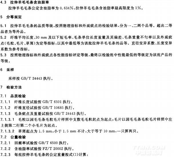 GBT 24317-2009 拉伸羊毛毛條
