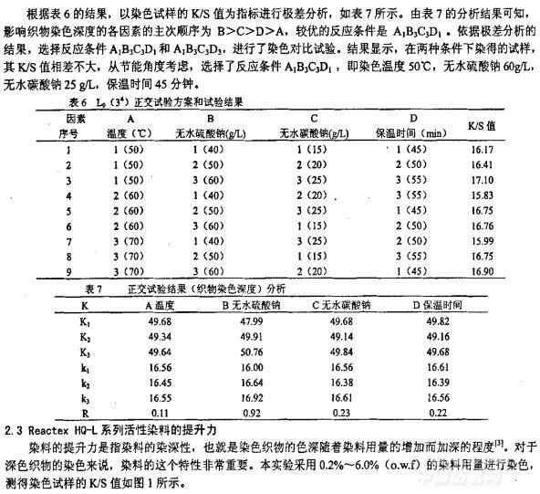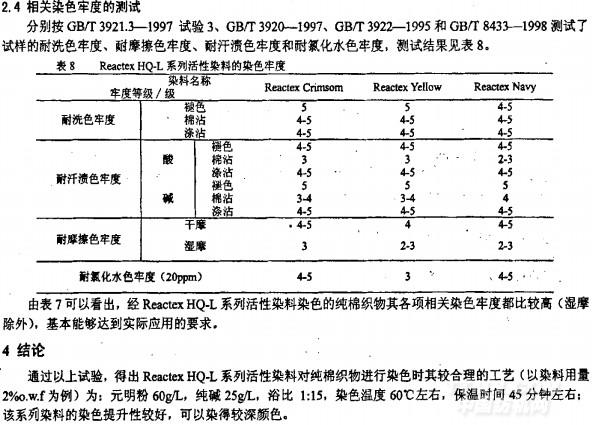 Reactex HQ一L系列活性染料對純棉織物的染色工藝研究