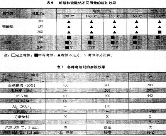 (2)酸漿中糊料的選擇用于爛花印花酸漿的糊料,必須具備下列條件。