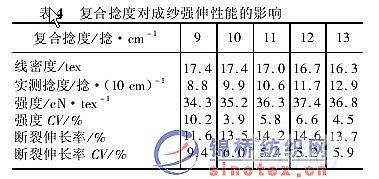 2.2 并捻捻度對復(fù)合紗線強伸性能的影響