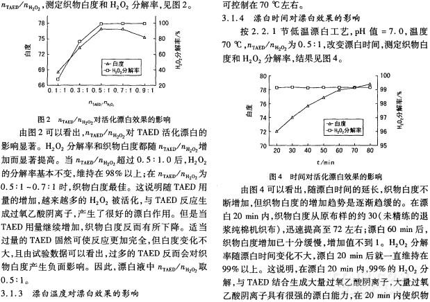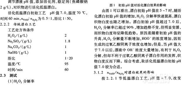 H2O2低溫活化漂白是國內(nèi)外研究的熱點(diǎn)課題之。在H202漂白浴中加入過氧化物活化劑,可以大大提高H2O2在較低溫度和溫和pH值條件下的漂白效果而不損傷纖維,是一種簡便而有效的方法。