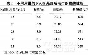 材料:竹/棉毛巾織物(毛經:14x2tex竹漿纖維+28tex棉紗;地經:36.4tex棉紗;緯紗:28tex棉紗),NaOH、30%H:0(分析純);滲透劑8802、氧漂穩定劑HB、螯合劑Sx、精練劑LH(512業品).