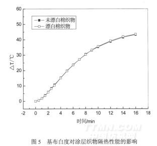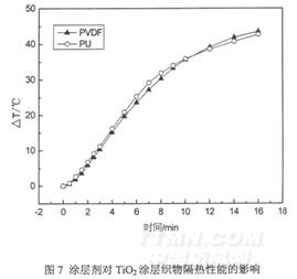 圖7為涂層劑對Ti02涂層織物隔熱性能的影響