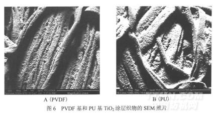 圖6為PVDF基和PU基Ti02涂層織物的SEM照片