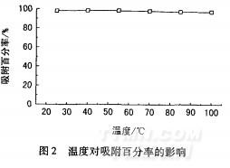 圖2是100mg/L染液在pH=7,不同溫度下的吸附百分率曲線。
