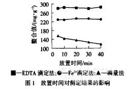 取樣品TF-510,分別按1.4方法測定,每種方法在滴定前分別放置5、lO、20、30、40 min,結果見圖1.