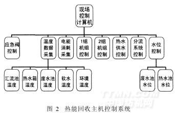 該分系統的功能是監控熱能的回收與處理。系統設置的單板機通過對溫度、流量和水位等參數的同步控制,優化回收過程,使回收效能達到最高(見圖2)。