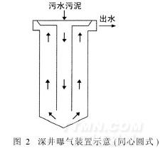 深井曝氣裝置的結構可分為同心圓式、U型管式和隔板式三種,該公司采用同心圓式(見圖2)。