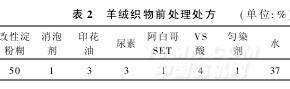 上漿后羊絨織物的烘干一般采用熱風(fēng)式烘干。烘干溫度不宜高過100℃。羊絨織物前處理處方見表2