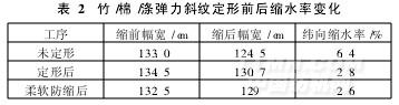 由表2知,彈力織物采用185℃,干布定形熱區停留35s,即八節烘房熱定形機車速41m/min,可滿足印染成品緯向縮水率<3%的客戶要求。