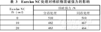 2.4 EurolanNC處理對棉織物頂破強(qiáng)力的影響