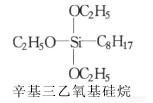 其中,R*為非活性基烷基,碳數4~10為佳,碳數過小時,硅烷易揮發,烷基過大時,硅烷的滲透能力差。烷氧基碳數1~4均可,但甲氧基在堿性條件下穩定性差,易與基材結合,影響滲透能力。德國wacker公司研發的SIL RESBS 1701有機硅防水劑主要成分為辛基三乙氧基硅烷,其分子結構式為: