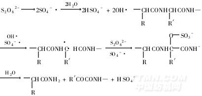 當亞硫酸鹽濃度為0.5~2.0mol/L時,羊毛胱氨酸的開裂拆鍵反應是可逆的,見下式[1]: