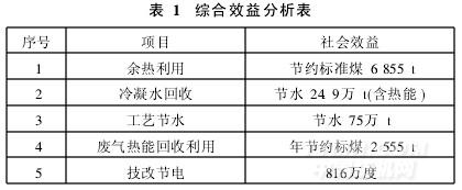 通過實(shí)施余熱回收利用,產(chǎn)生的綜合效益見表1。