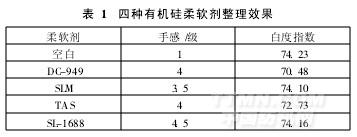 采用四種有機硅柔軟劑對棉織物進行柔軟整理,整理效果見表1。