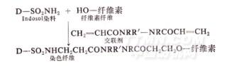 由瑞士山德士公司新開發的商品牌號名為Indosol活性固色染料,染料本身并不帶活性基團,應用時,棉布先按直接染料常規工藝染色,然后用帶活潑雙鍵的交聯劑處理,使染料與纖維發生鍵合。
