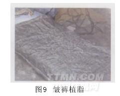 將褲子弄皺后加上樹脂(Resin)漿料,使褲子長久保持皺褶的效果,俗稱“皺褲植脂”,如圖9。