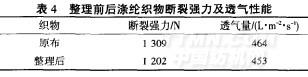 2.3拒水拒油整理對滌綸織物斷裂強力及透氣性能的影響