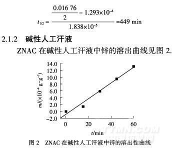 2.1ZNAC在不同工汗液中鋅的溶出性結(jié)果