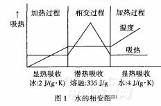 相變是指某些物質在一定溫度下相態發生變化的現象.相變時所吸收或放出的能量稱為相變熱(也叫作相變潛熱),物質溫度變化時的吸放熱量叫作顯熱,相對于顯熱來說,相變熱要大得多.例如,水在相變過程中吸熱量與溫度之間的關系如圖1所示.