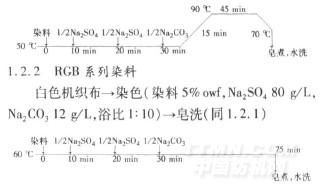 染料 Procion Yellow XL+, Procion BrilliantRed XL+,Procion Dark Blue XL+, Procion Navy XL+; DeepRed RGB、NavyRGB、Carbon RGB(德司達(dá)公司)。
