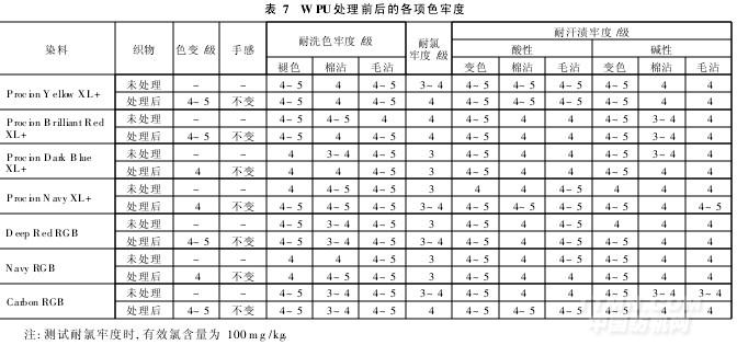 WPU對其它色牢度影響如表7所示。