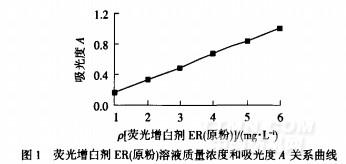 熒光增白劑ER原粉的生產企業可在此適宜的質量濃度范圍確定一個質量濃度,用作本企業產品紫外吸收的測定質量濃度,如確定熒光增白劑ER(原粉)溶液的測定質量濃度為4mg/L