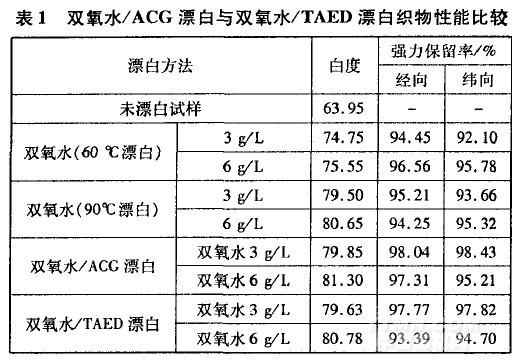 (3)雙氧水/ACG活化體系漂白織物白度高,對(duì)纖維損傷小,漂白溫度低,具有節(jié)能的優(yōu)點(diǎn)。∞