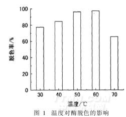 由圖1可見,皂洗酶最佳使用溫度為50~60℃,超過70℃,酶部分失活, 80℃時酶全部失活,喪失脫色能力。綜合考慮脫色效果及能源消耗,確定皂洗酶最佳使用溫度為50℃。