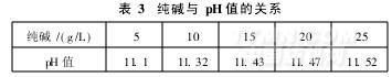 盡量采用對工藝條件依存性小,尤其是對鹽/堿敏感性小的染料。根據(jù)顏色深淺,分段(次)加純堿,使染液pH值緩慢上升,以利于染料的勻染和透染。純堿濃度與pH值之間的關系見表3。