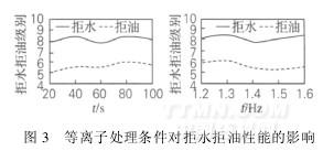 2.2.2 等離子體處理時(shí)間和處理頻率對拒水拒油性的影響