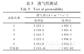 對按最佳工藝整理后的織物進(jìn)行了透氣性能的研究,并與整理前織物性能進(jìn)行了比較,結(jié)果列于表5中。