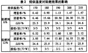 2.2焙烘溫度對阻燃效果的影響