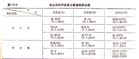 拉太耳和伊斯曼分散染料的分類見表7-2-5.