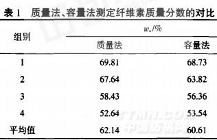 2.1質(zhì)量法和容量法測(cè)定纖維素質(zhì)量分?jǐn)?shù)的對(duì)比