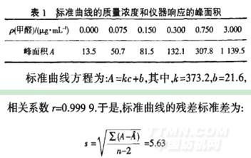 標(biāo)準(zhǔn)曲線上,甲醛質(zhì)量濃度和儀器響應(yīng)的峰面積