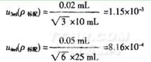 主要是單標(biāo)移液管和滴定管的校準(zhǔn).標(biāo)定時(shí),原液移取量為10 mL,消耗硫酸標(biāo)準(zhǔn)溶液體積約為25 mL,分別使用10 mL單標(biāo)移液管和50 mL滴定管進(jìn)行操作,則2者的相對(duì)不確定度分別為: