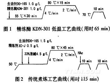 2.1精練酶低溫前處理工藝與傳統(tǒng)煮練工藝