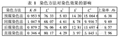 媒染方法對染色織物色相、色光和色牢度的影響列示于表1和表2。