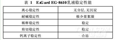 EzGard EG-8610乳液的各項穩定性能指標表1。