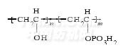 由圖6A知,(1.3~1.4)×10-6(muti,J=44.8 Hz,2H,CH2)和(3.8~3.9)×10-6(d,J=24.4 Hz,1H,CH)分別為主鏈上的—CH2—和—CH—峰,而PVA-POH中OH的化學位移在4.1×10-6(s,1.3H,—OH).由羥基的峰面積與CH的峰面積可計算出磷酸的酯化率為:[(1.29-1.00)/1.00]×100%=29.0%,由此推斷出m∶n=2.45∶1,PVA-POH結構式如下: