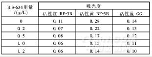 表1 皂洗劑HS-634用量對水煮殘液吸光度的影響