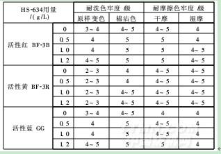 表3 皂洗劑HS-634用量對染色牢度的影響