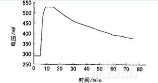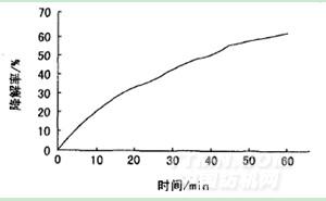 采用實驗室自制的多功能環境模擬測試艙在線檢測系統,測得電壓與時間的關系,如圖6所示;將其轉化為降解率與時間的關系,如圖7所示。