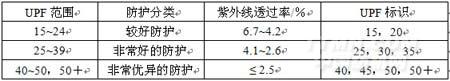 表1澳大利亞/新西蘭標(biāo)準(zhǔn)確定的UPF數(shù)值及防護(hù)等級(jí)