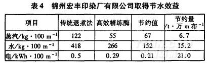 錦州宏豐印染廠有限公司采用該工藝后節(jié)水效果明顯(見(jiàn)表4)。