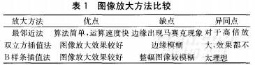 目前采用的圖像放大方法,如最鄰近法、雙立方插值、B樣條插值等高倍放大后效果都不理想,不能滿足軟家裝個(gè)性化定制生產(chǎn)需要,其優(yōu)缺點(diǎn)比較如表1所示。