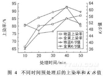 2.5 預(yù)處理時(shí)間對(duì)上染率和K /S值的影響