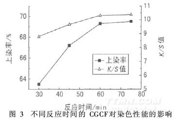 2. 1. 4 接枝反應(yīng)時(shí)間對(duì)染色性能的影響