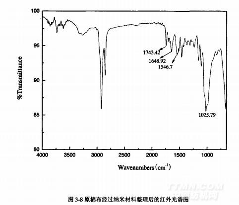 為了更好的說明納米材料和棉纖維的交聯情況,對棉織物進行了紅外光譜測試,見圖3.8。
